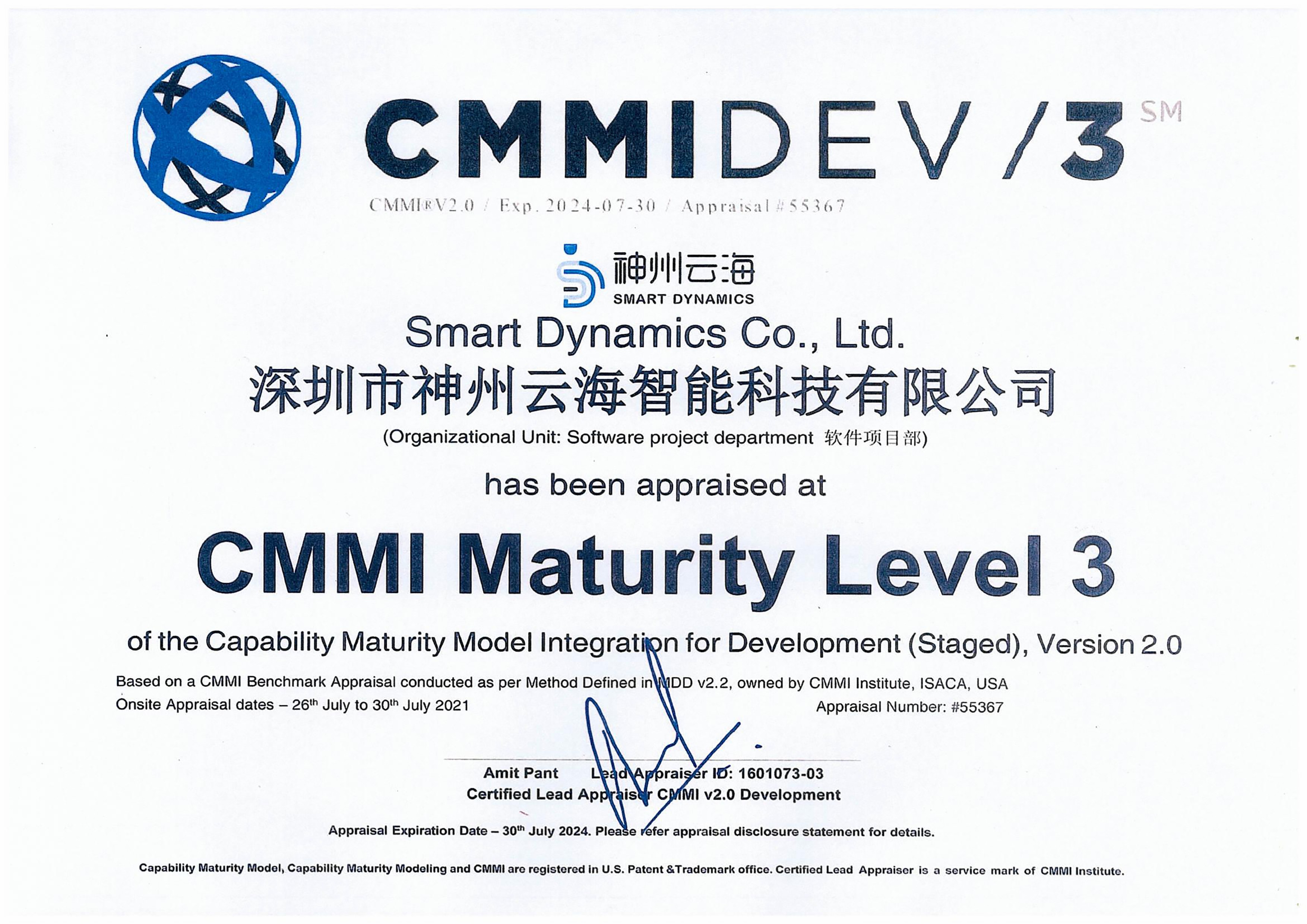 CMMI3級證書